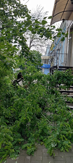 великі гілки або частини дерев падають на дахи будинків, руйнуючи покрівлю та